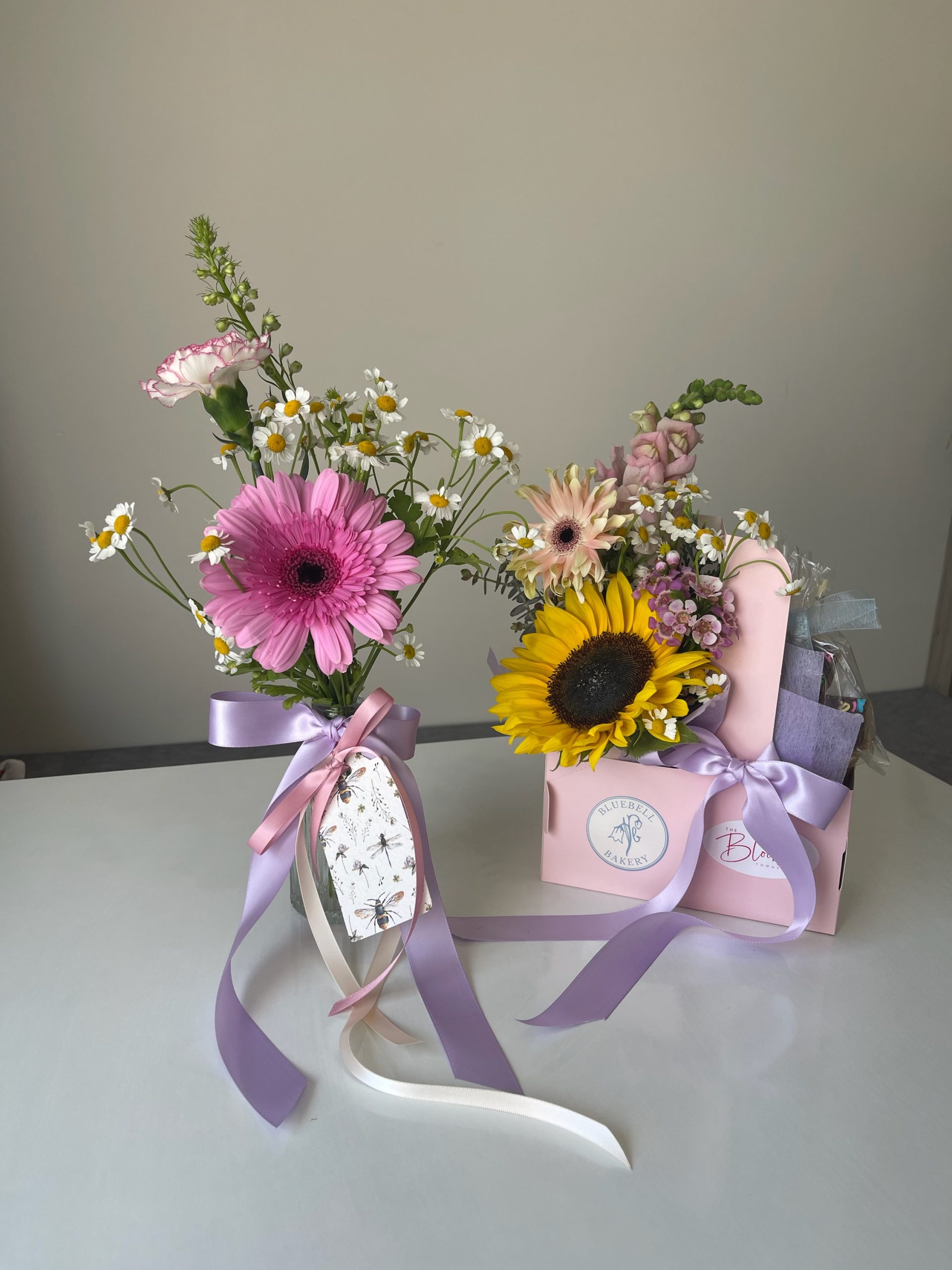 ☕️ Coffee & Flowers Carrier – $45 three stems of seasonal blooms with filler and foilage, paired with Bluebell Bakery sweet treats also available in store this week!
